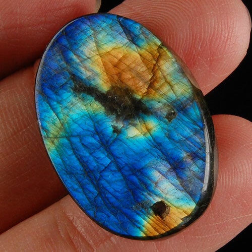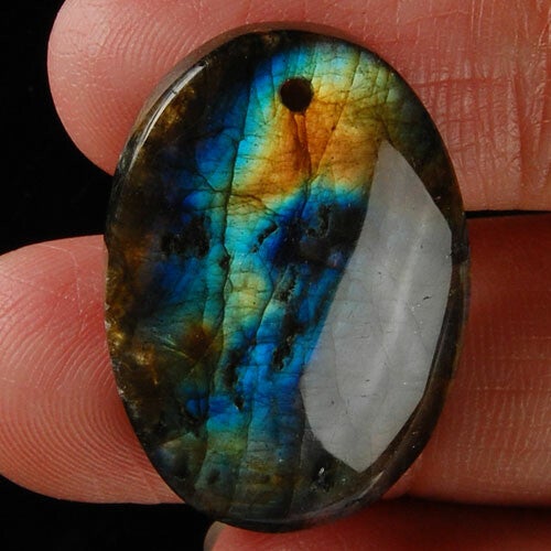 Ovale Labradoriet cabochon. Mooie flash kleuren. Wordt geleverd met zilveren aanhaakoog.