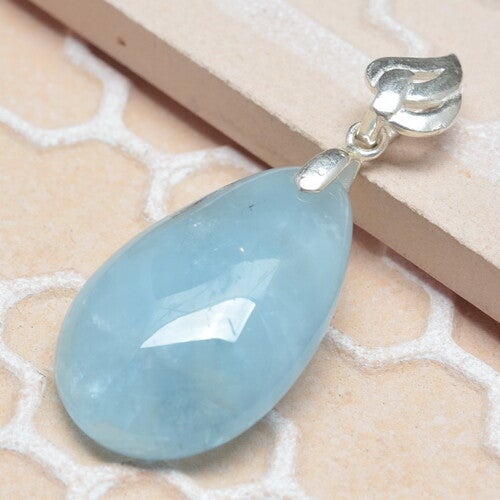 Druppelvormige hanger met een hemelsblauwe Aquamarijn in een heel mooie kwaliteit. Afgewerkt met massief zilver.