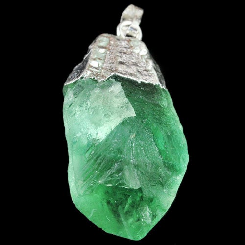 Mooi vormgegeven Groene Fluoriet in een ruwe uitvoering, afgewerkt met 925 sterling zilver. Frisse heldergroene kleur.