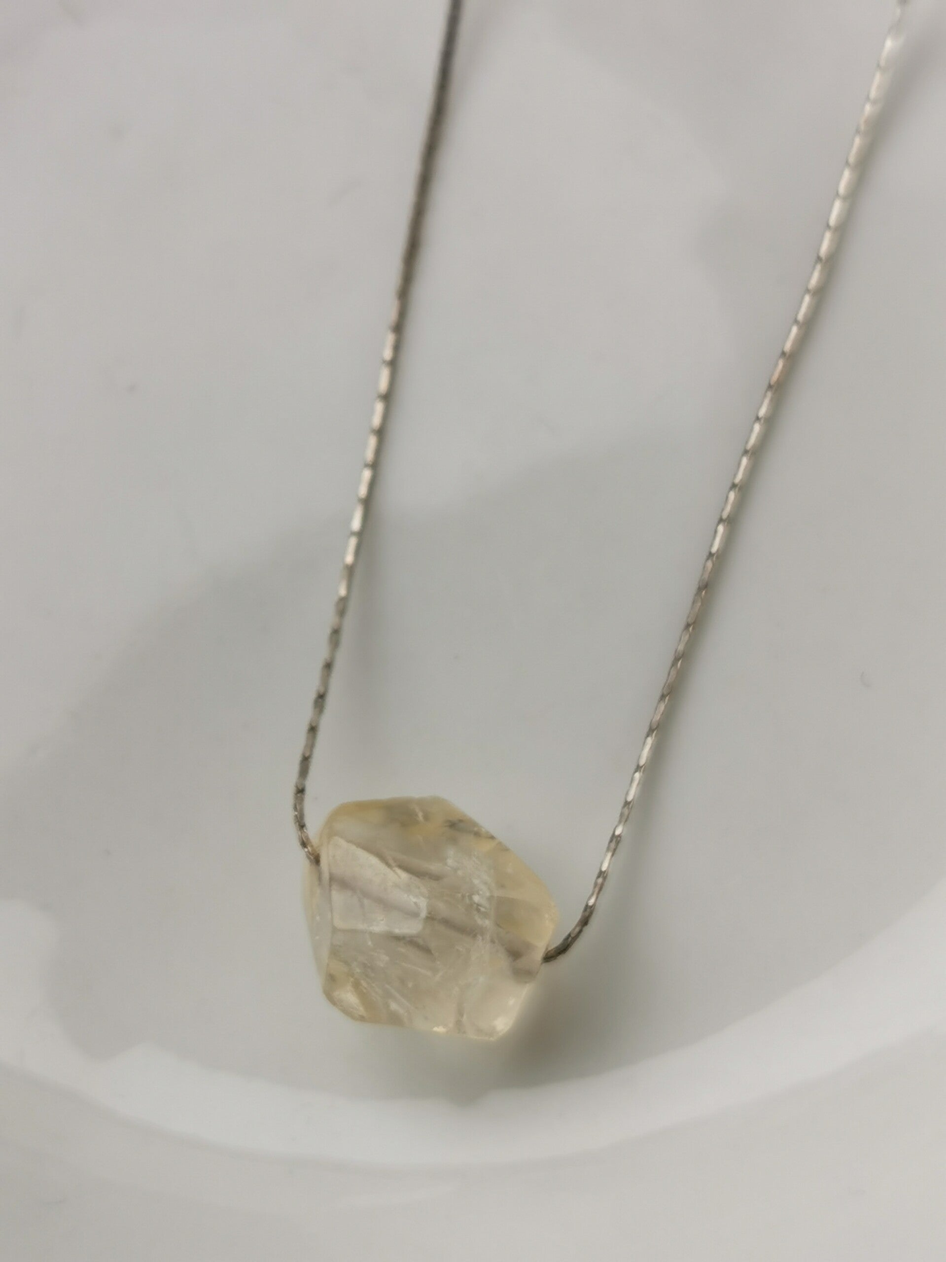Mooie minimalistische ketting met een vrije vorm Citrien. Het is een natuurlijke Citrien en dus géén gebrande amethist of andere steen! Inclusief 925 sterling zilveren Cardano ketting.