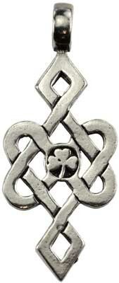 Een prachtig amulet met in het hart het eeuwenoude symbool voor geluk: het klavertje vier. Omsloten door een gedetailleerde Keltische knoop zonder begin en einde. Draag dit amulet om eeuwigdurend geluk aan te trekken.