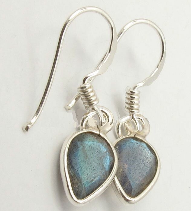 Subtiele 925 zilveren oorhangertjes met een druppelvormige Labradoriet met een vurige gloed. De stenen zijn glanzend gepolijst en mooi afgewerkt.