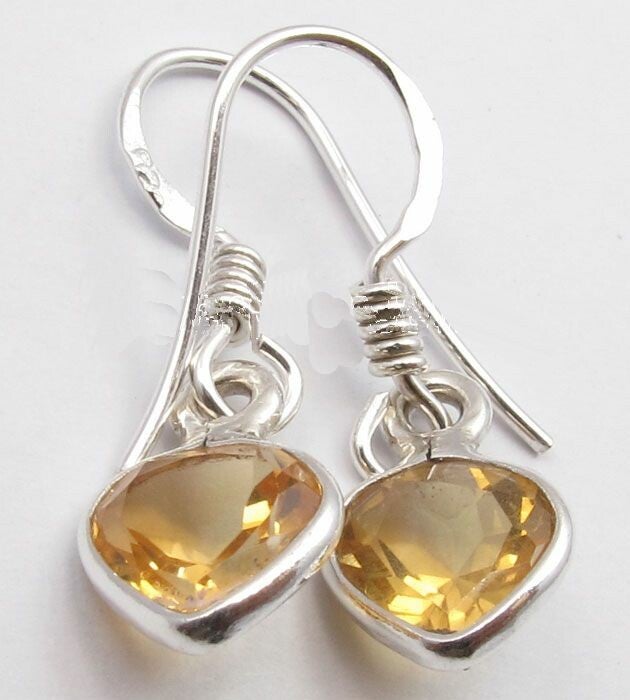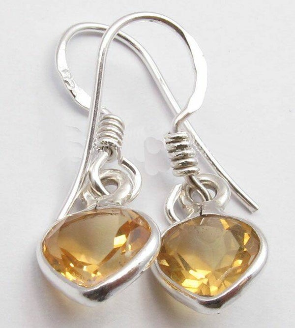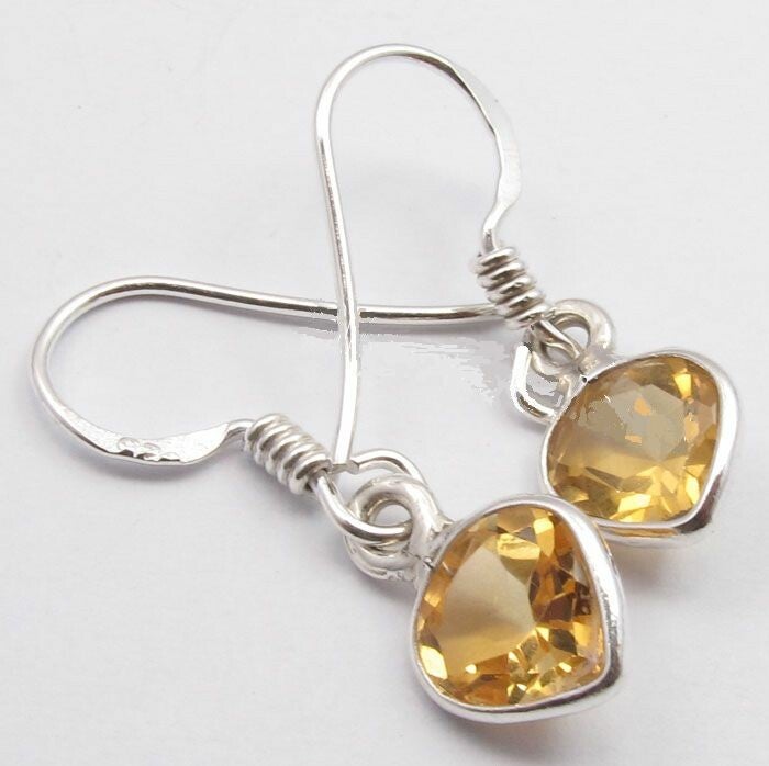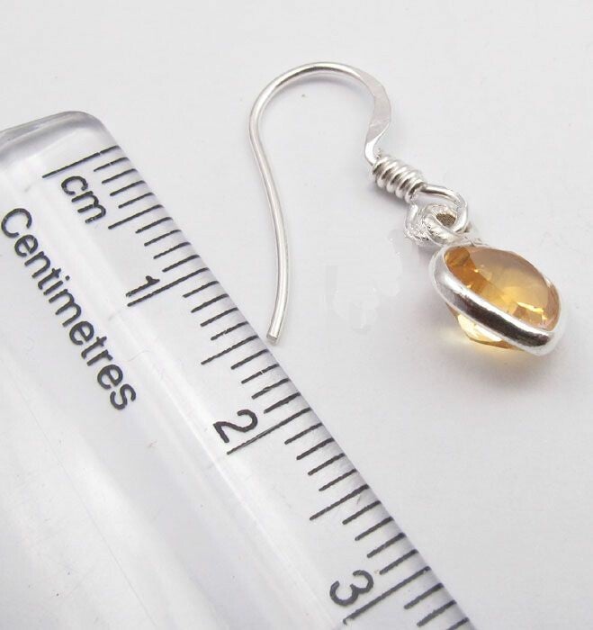 Druppelvormige zilveren oorhangertjes met een sprankelende natuurlijke Citrien. De goudkleurige steen is van hoge kwaliteit en facet geslepen aan beide zijden. Handgemaakt.