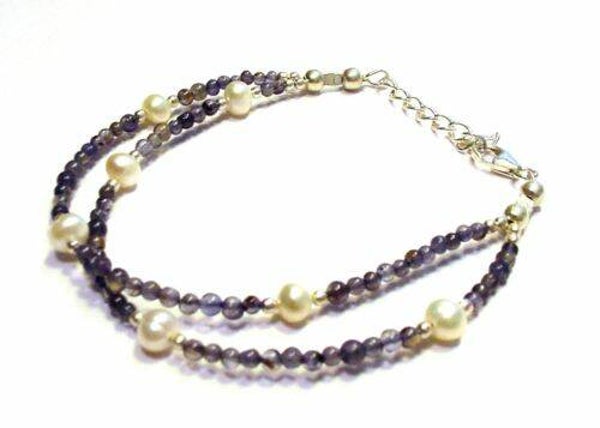 Fantastische armband met Ioliet en Parel. De armband is op maat te maken dankzij het kettinkje, dus past altijd.