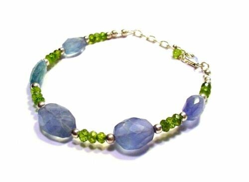 Item: Gorgeous, Fancy 925 Sterling Silver 50cttw Faceted Apatite and Peridot Bracelet
