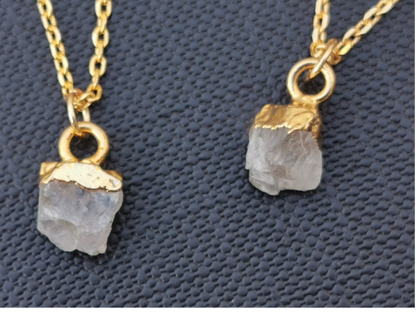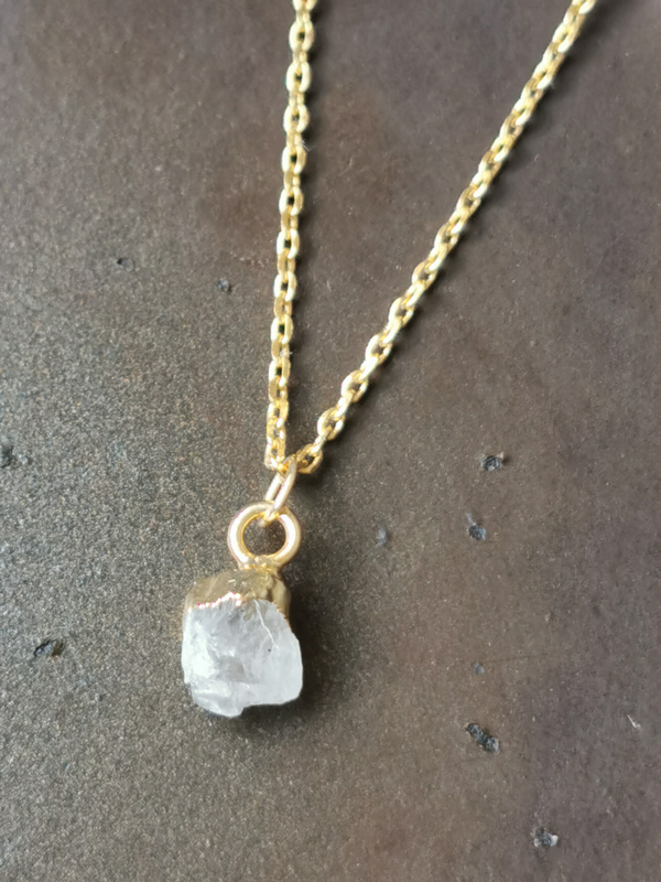 Ruwe Herkimer Diamant aan een goldplated ketting. De steen is glashelder en heeft een vrije vorm. Prachtige, krachtige steen die bekend staat om z'n sterke energie en helende eigenschappen.