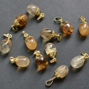 Mooi gemaakt hangertje van natuurlijke gele kwarts. Dit mini-eitje is glad en glanzend en de bovenzijde is gold plated afgewerkt.