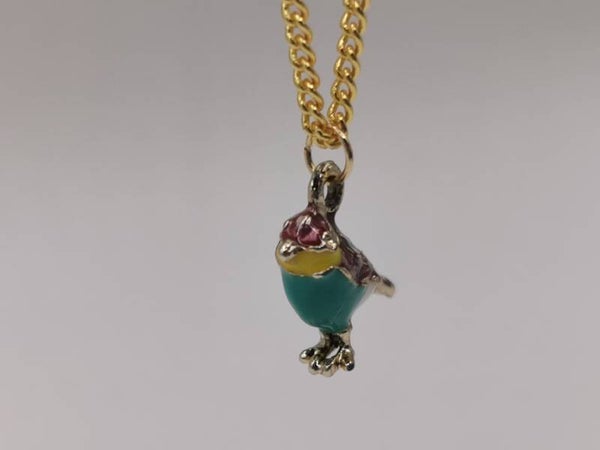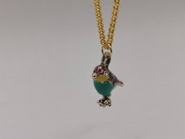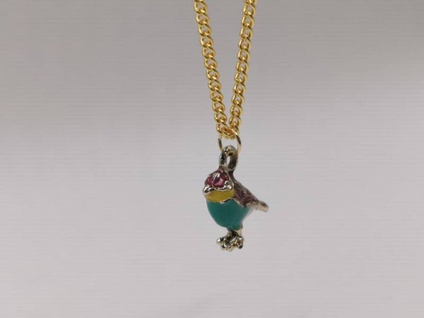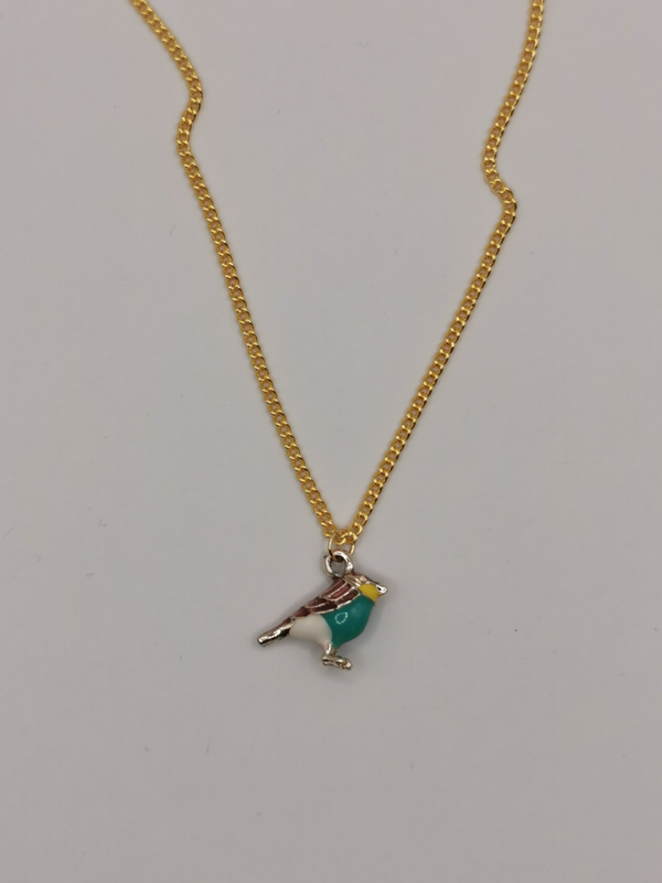 Mooi gedetailleerde 3D vogel. Handgemaakt, en afgewerkt met email in de kleuren turquoise, wit, roestbruin en goud. Wordt geleverd inclusief goldfilled ketting.