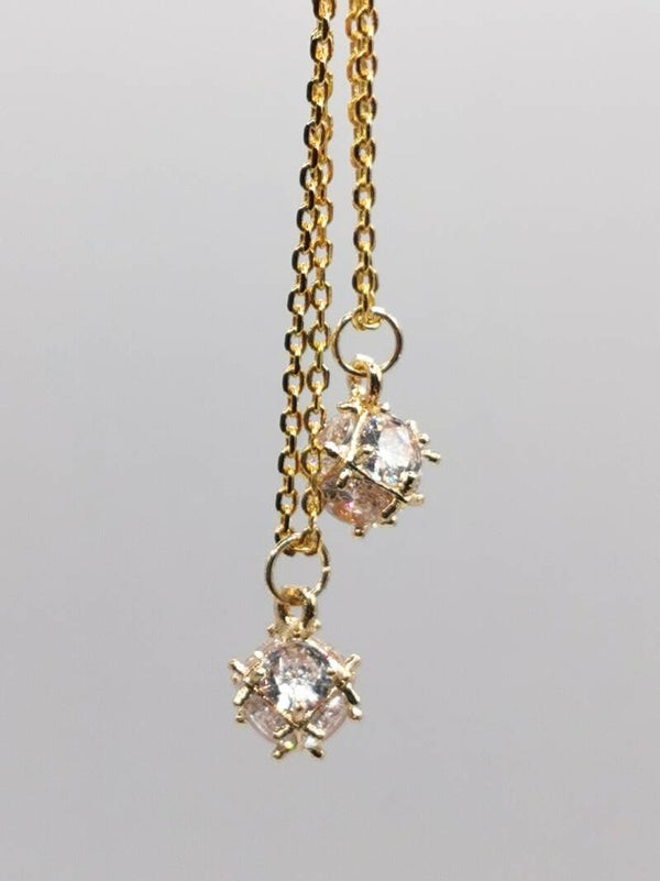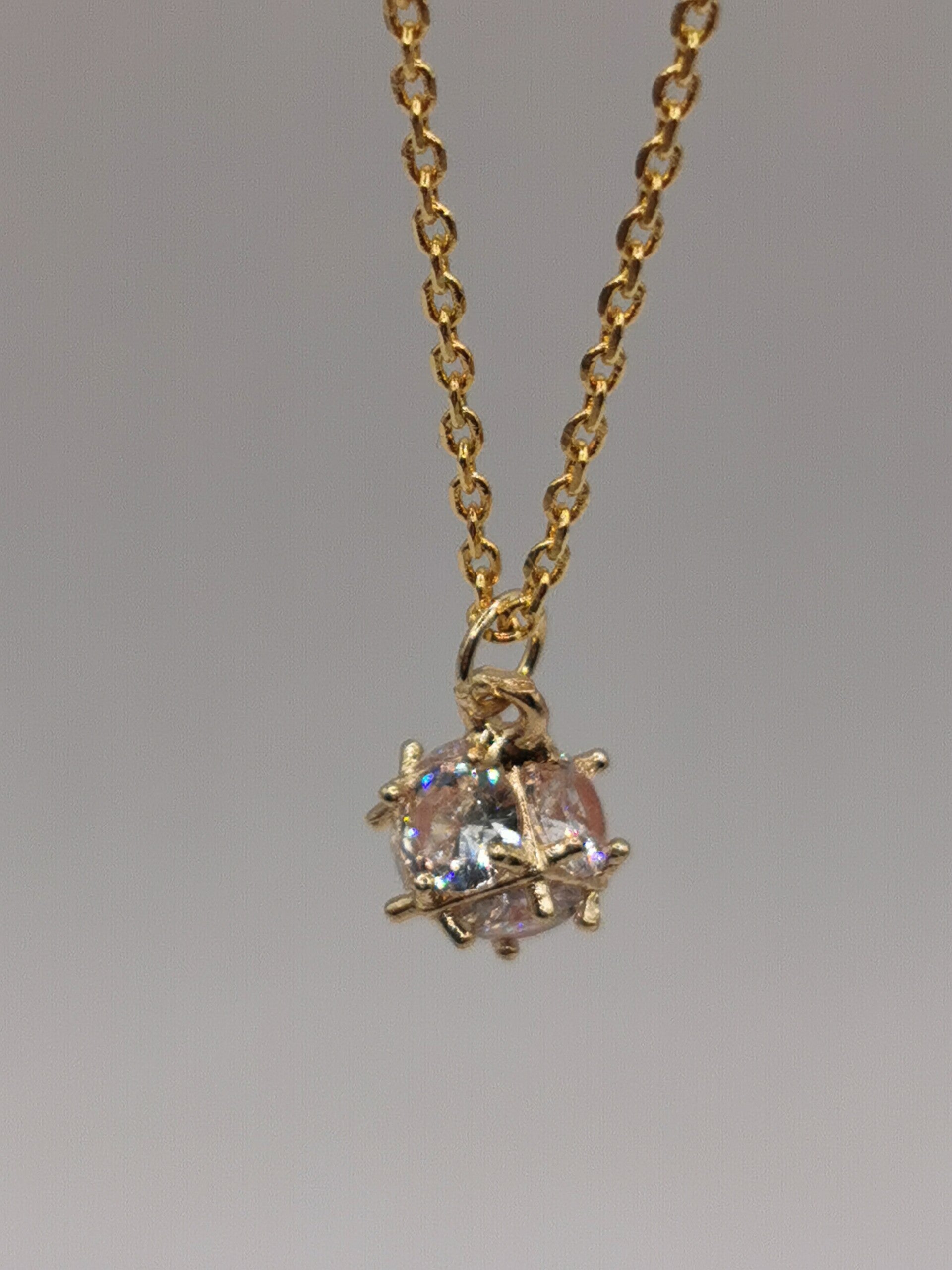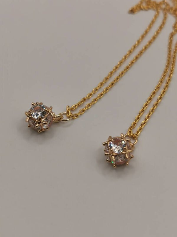Goud vergulde hanger met een sprankelende zesvlakkige Zirkonia. Dankzij de vele vlakjes wordt het licht mooi weerkaatst en dat levert een letterlijk schitterend hangertje op. De steen wordt speels omlijst door 14 K vergulde staafjes.