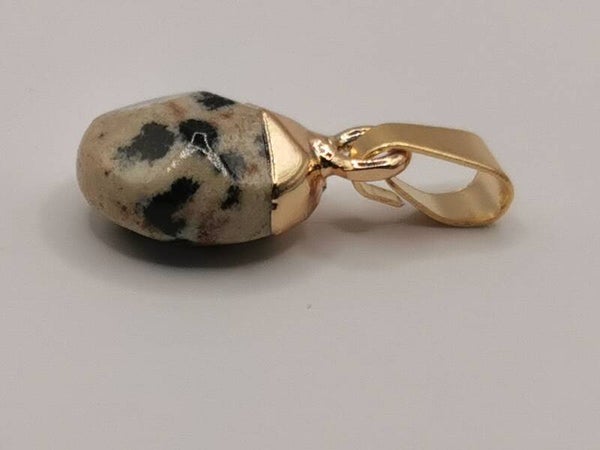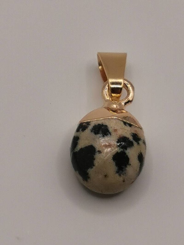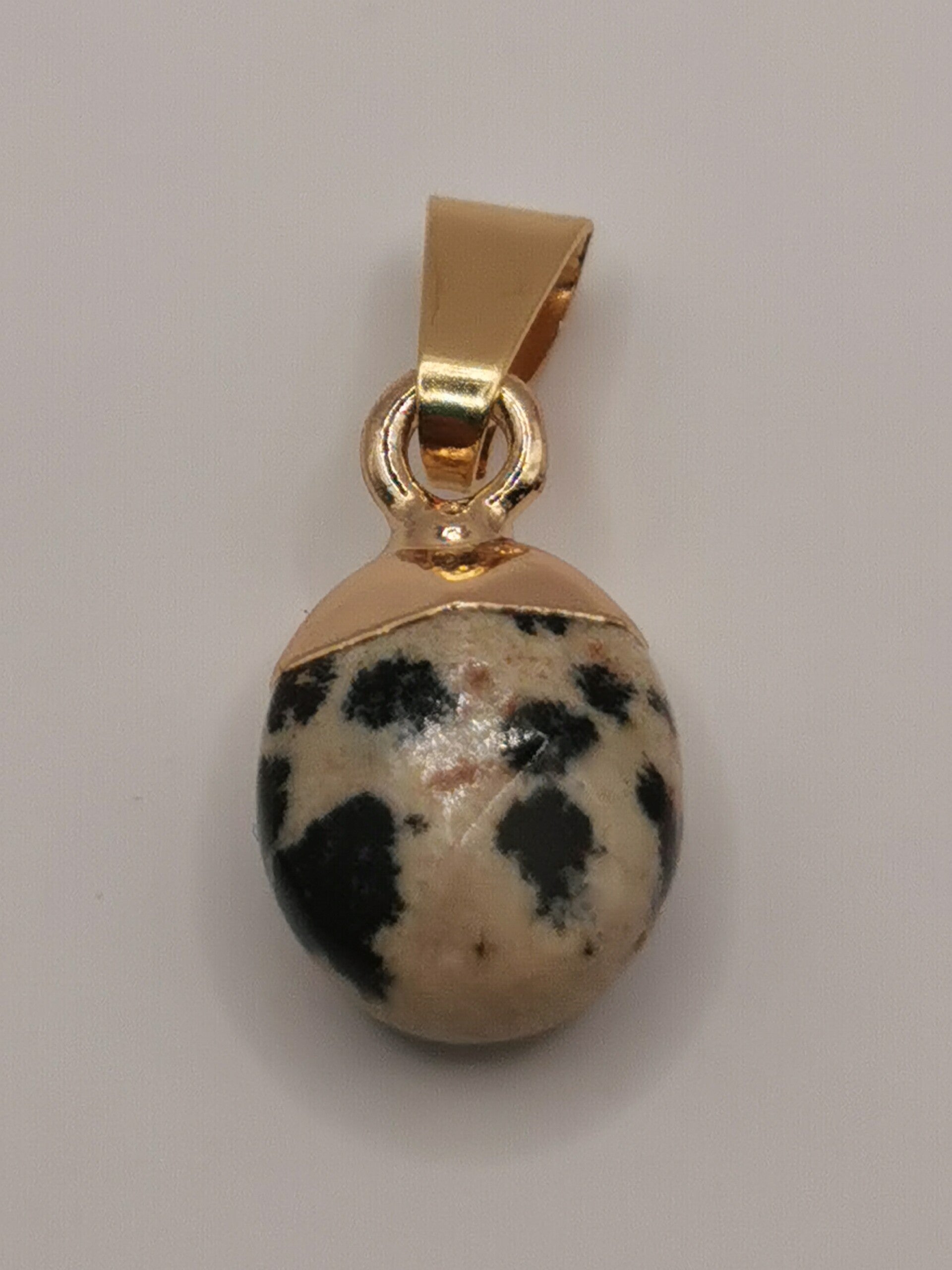Ovaal hangertje met een facet geslepen Howliet. Het steentje heeft een bolle vorm en is mooi gepolijst. De metalen delen zijn gold plated.