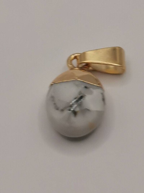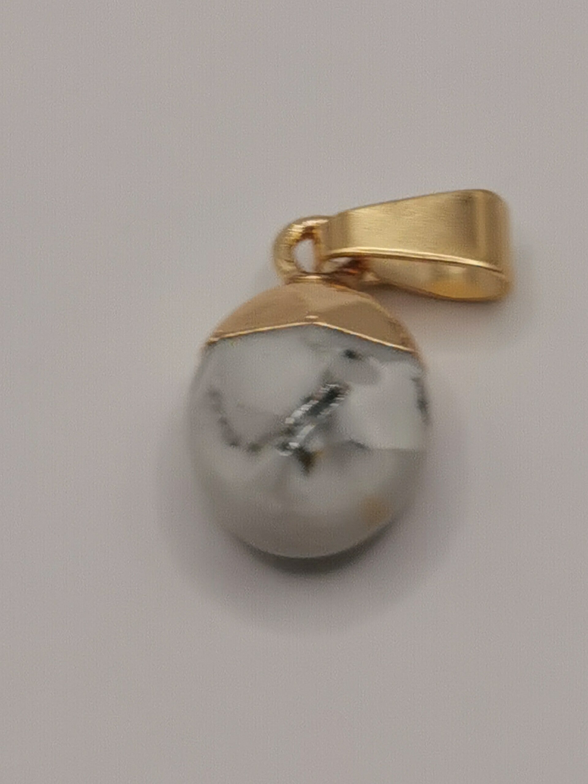 Ovaal hangertje met een facet geslepen Howliet. Het steentje heeft een bolle vorm en is mooi gepolijst. De metalen delen zijn gold plated.